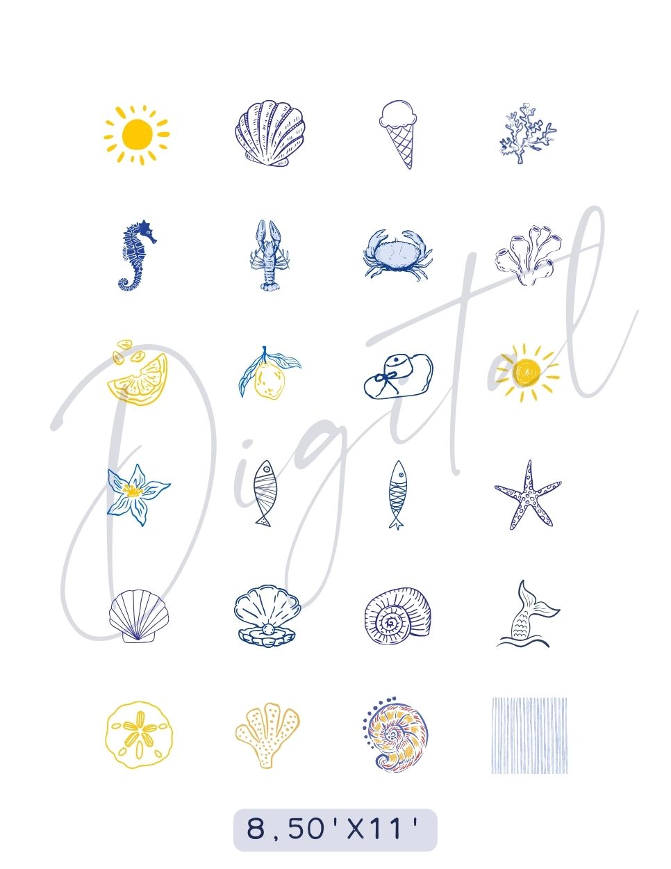 AMALFI Summer Digital Paper Pack, Printable Charm Necklace, Digital Printable FOR Polymer Clay Transfer Paper, Digital Polymer Clay Tools